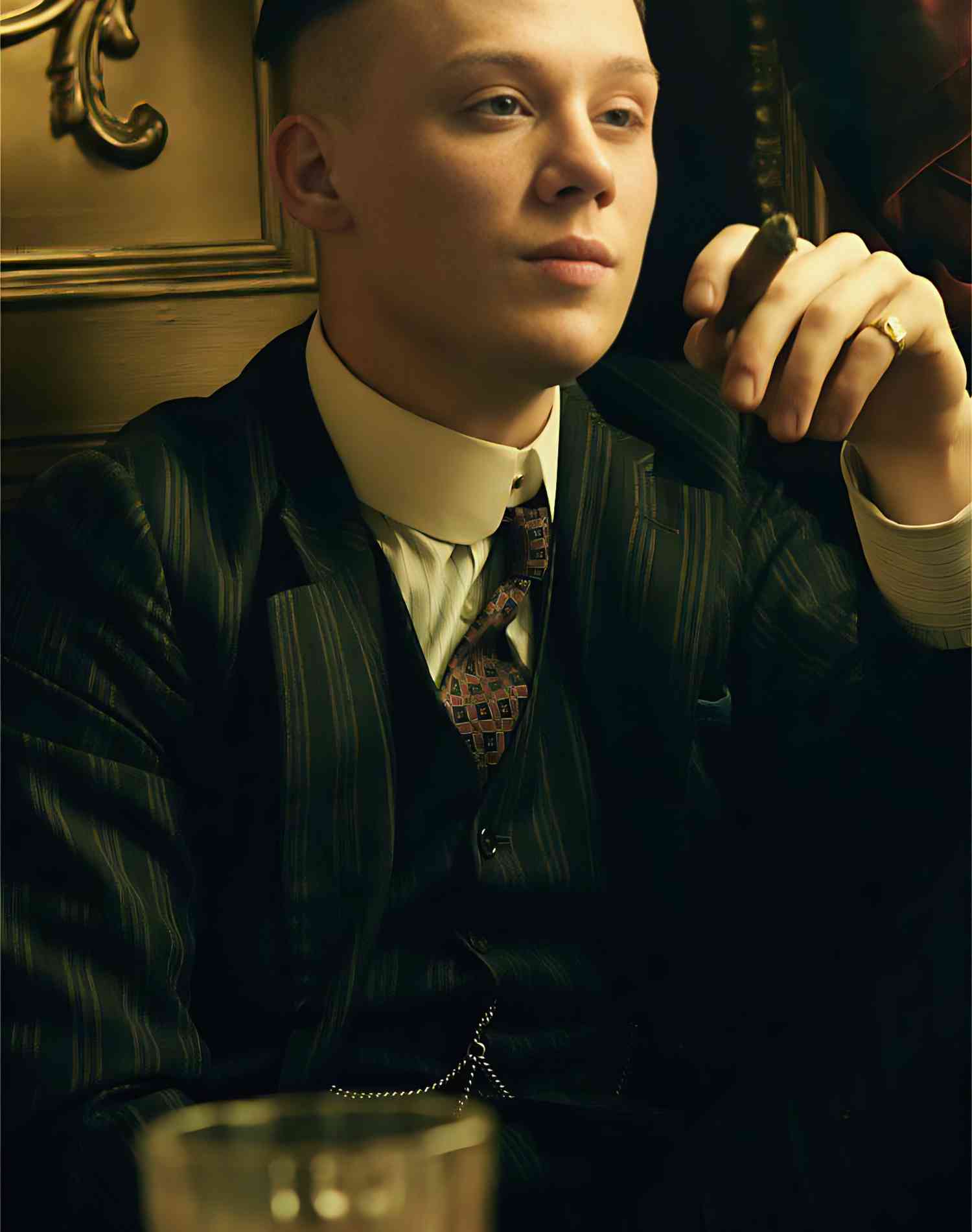 Structured tailoring, inspired by John Shelby’s disciplined silhouette. Clean shoulders, assertive lapel, a line that holds its shape from first drink to last decision. This is presence by design: no logos, no noise just architecture on the body. For the man who prefers command to volume and invests in pieces that outlast seasons.