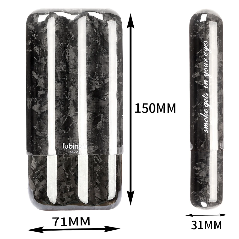 Fiber Cigar Case – Travel Black Tube for 2–3 Cigars, Lightweight Forged-Carbon Look – Lubinski