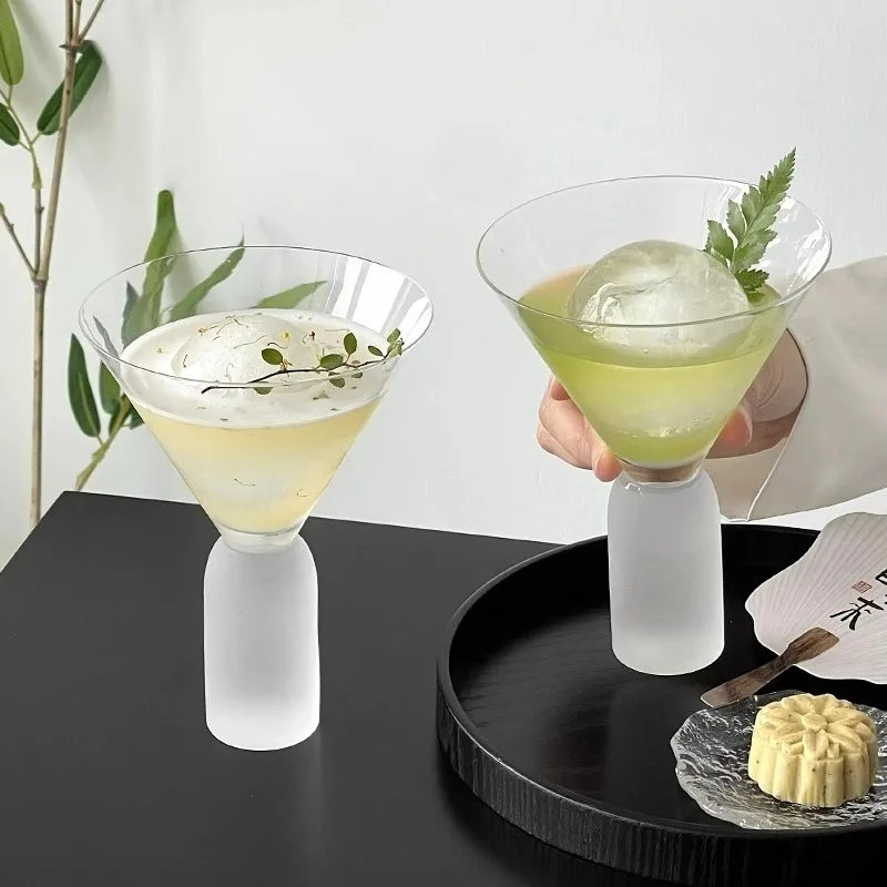 Creative Cocktail Glasses Cups Frosted Handle Glass Cups High-foot Martini Glass Cup Simple Dessert Cold Drink Cup Kitchen Tools