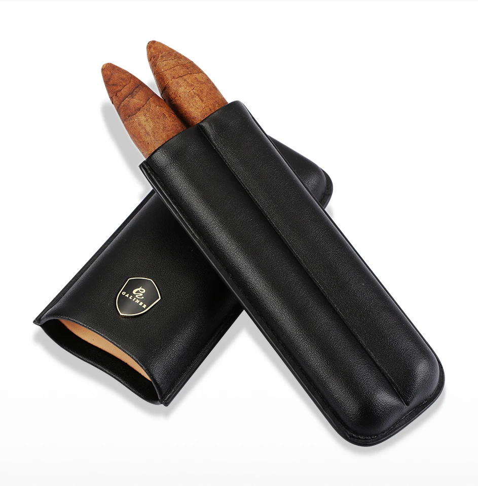 Leather Cigar Case 2 Tube by GALINER - Portable Mini Travel Humidor