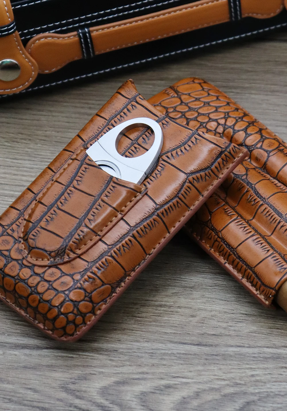 Leather Cigar Case - 3-Cigar Travel Case with Cutter Pocket, Cow Leather – Corletaria