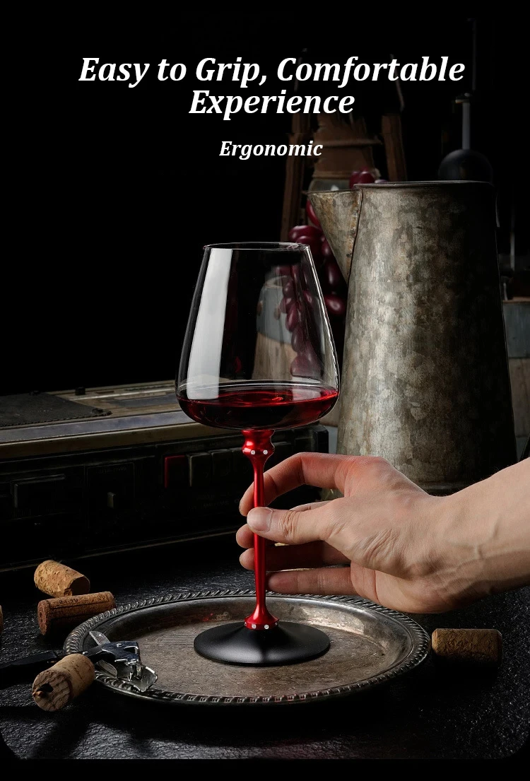 Design details are subtle but intentional. The bowl flares slightly at the shoulders before narrowing toward the rim, encouraging a gentle swirl even when the glass is at rest. The stem is long enough for an easy, ergonomic grip, keeping warmth from your hand away from the bowl. The base measures approximately 8 cm in diameter, with the glass standing around 23.4 cm high, a presence that commands attention without shouting for it.