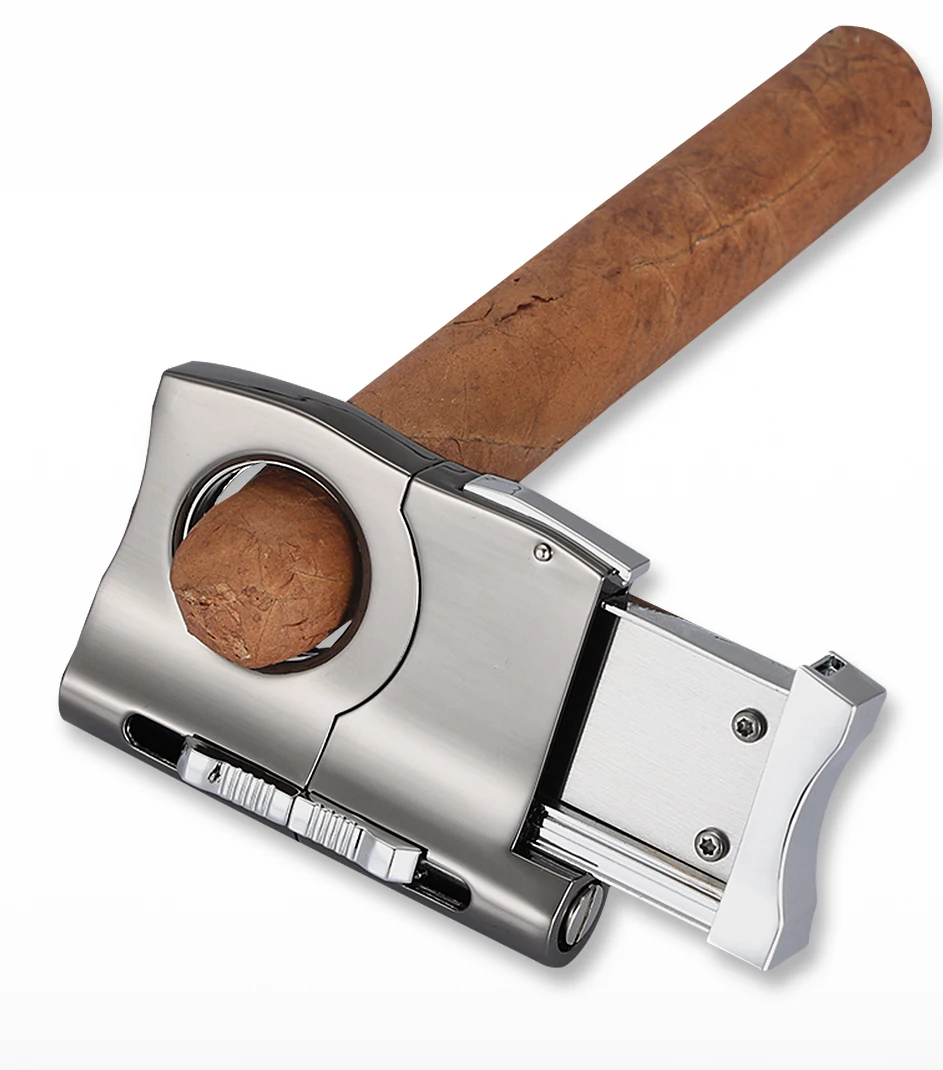 A machined stainless-steel guillotine delivers a firm, linear motion. The blade glides without chatter, protecting the wrapper and ensuring a smooth draw from the first puff.