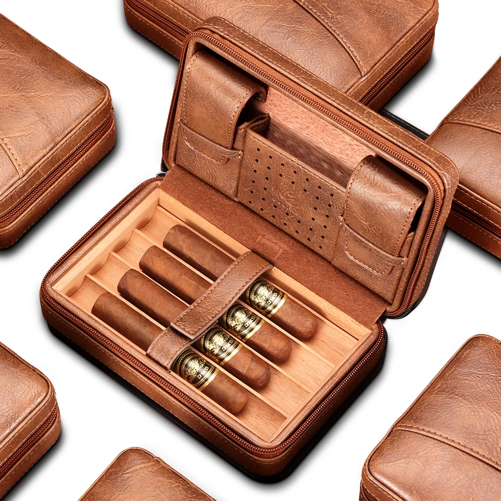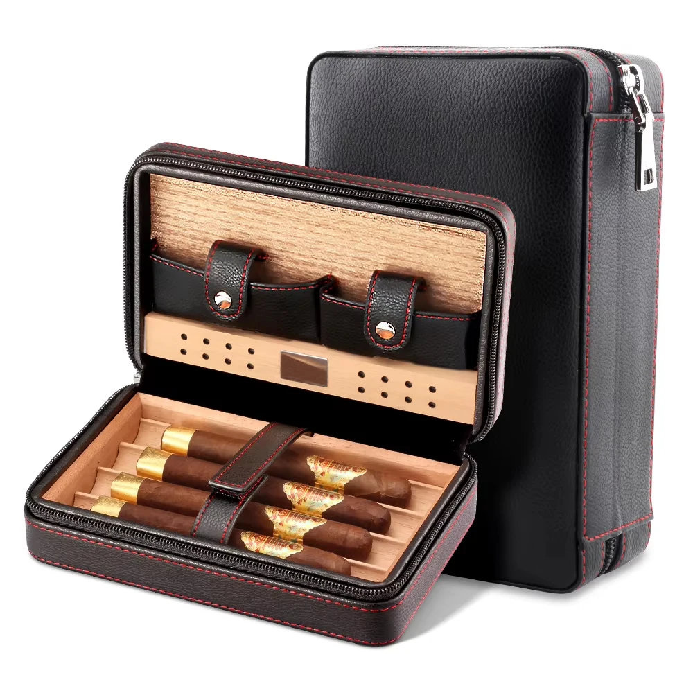 Cedar Travel Humidor Case - Leather, 4-Cigar - Corletaria Humidifier