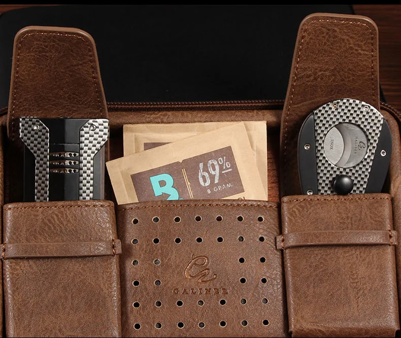 Season the Spanish cedar interior as you would a traditional humidor - wipe lightly with a damp cloth, allow it to dry thoroughly, then introduce a quality humidity pack before loading your cigars. Avoid soaking the wood or exposing the case to direct heat sources. Keep the leather exterior away from sharp edges and clean it with a soft, dry cloth, using a neutral leather conditioner when needed. Treated with basic respect, this travel cigar humidor will accompany you through years of flights, victories and quiet reflections.