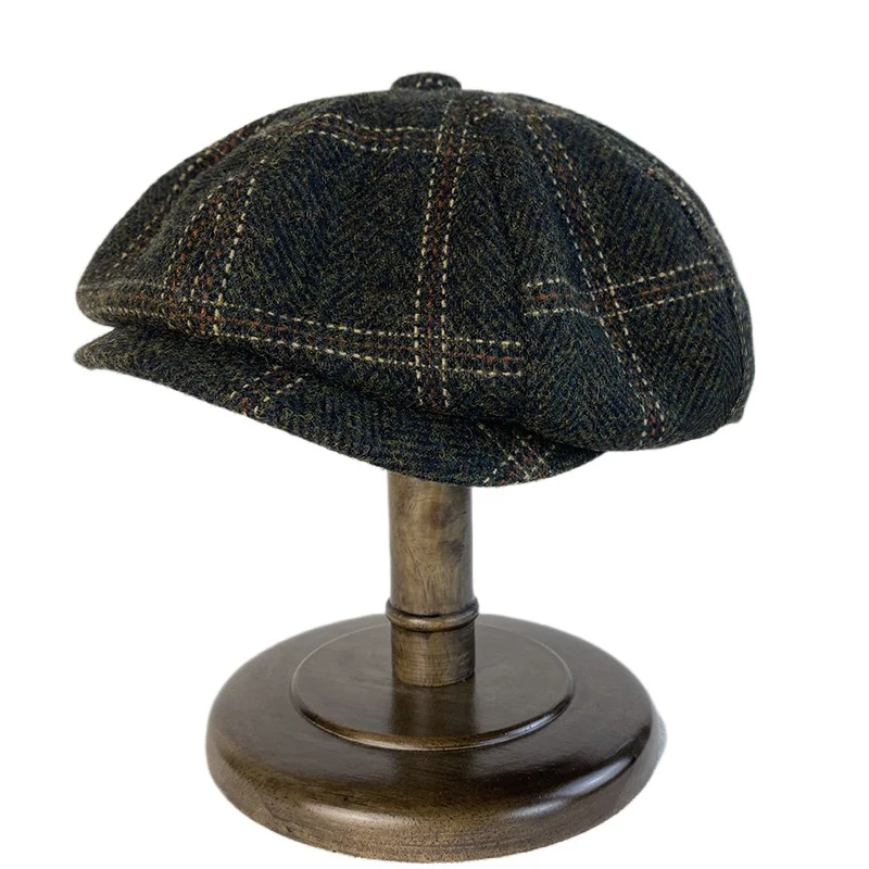 Wool Plaid Newsboy Cap - Tweed Eight Panel - Corletaria